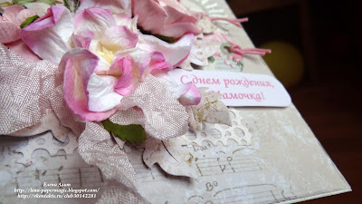 Кстати, использовала много купленного в Леонардо во время поездки - бумагу ScrapBerry"s, фоновый штамп, надпись-деревяшку, тэжик и даже карандашик из Икеи :))